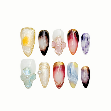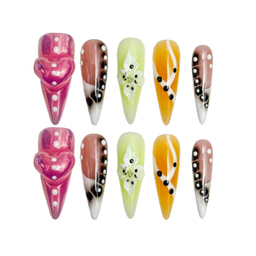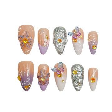Walking through a world of floral fantasy with Fano's 3D carving press-on nails. Featuring delicate,...